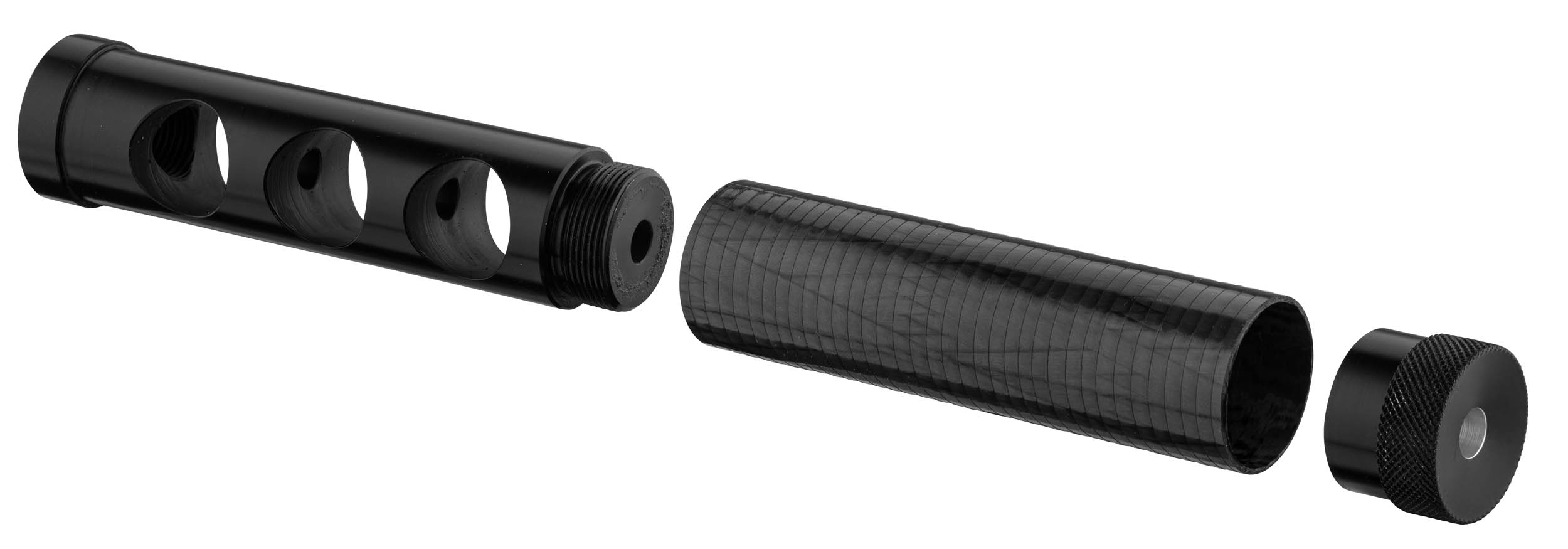 The carbon filament winding technology (used for missiles, for Airbus planes or in the design of the masts of the Vendée Globe boats) ensures resistance to difficult climates (humidity, air salinity, heat, sand , etc.), to high pressure and decompression, allows high precision thanks to excellent conduction of heat exchange, and makes our Adamantium® silencer an aesthetic, ultra-light but robust product.
