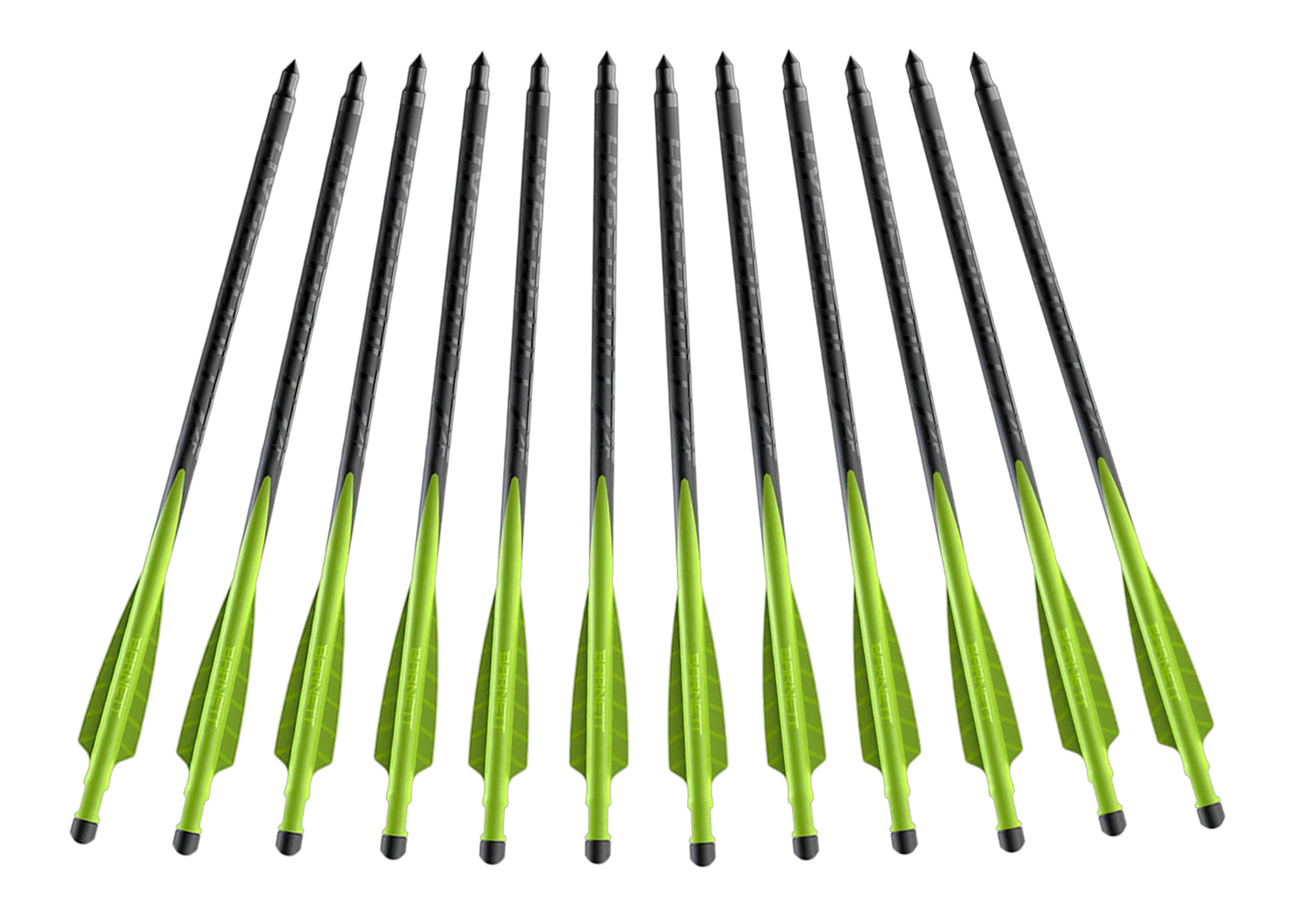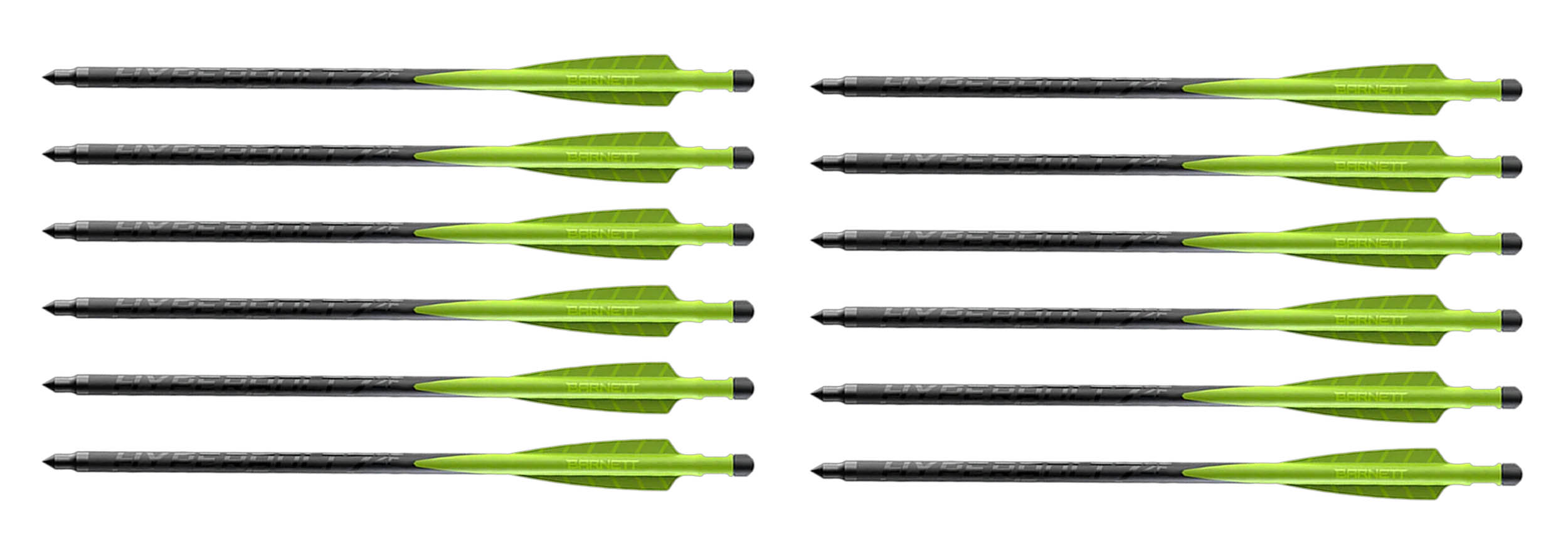 HYPERBOLT offers a blister pack of 12 7-inch double-fletched bolts, perfect for rapid shooting with the DEMUN TRI-STRIKE crossbow.