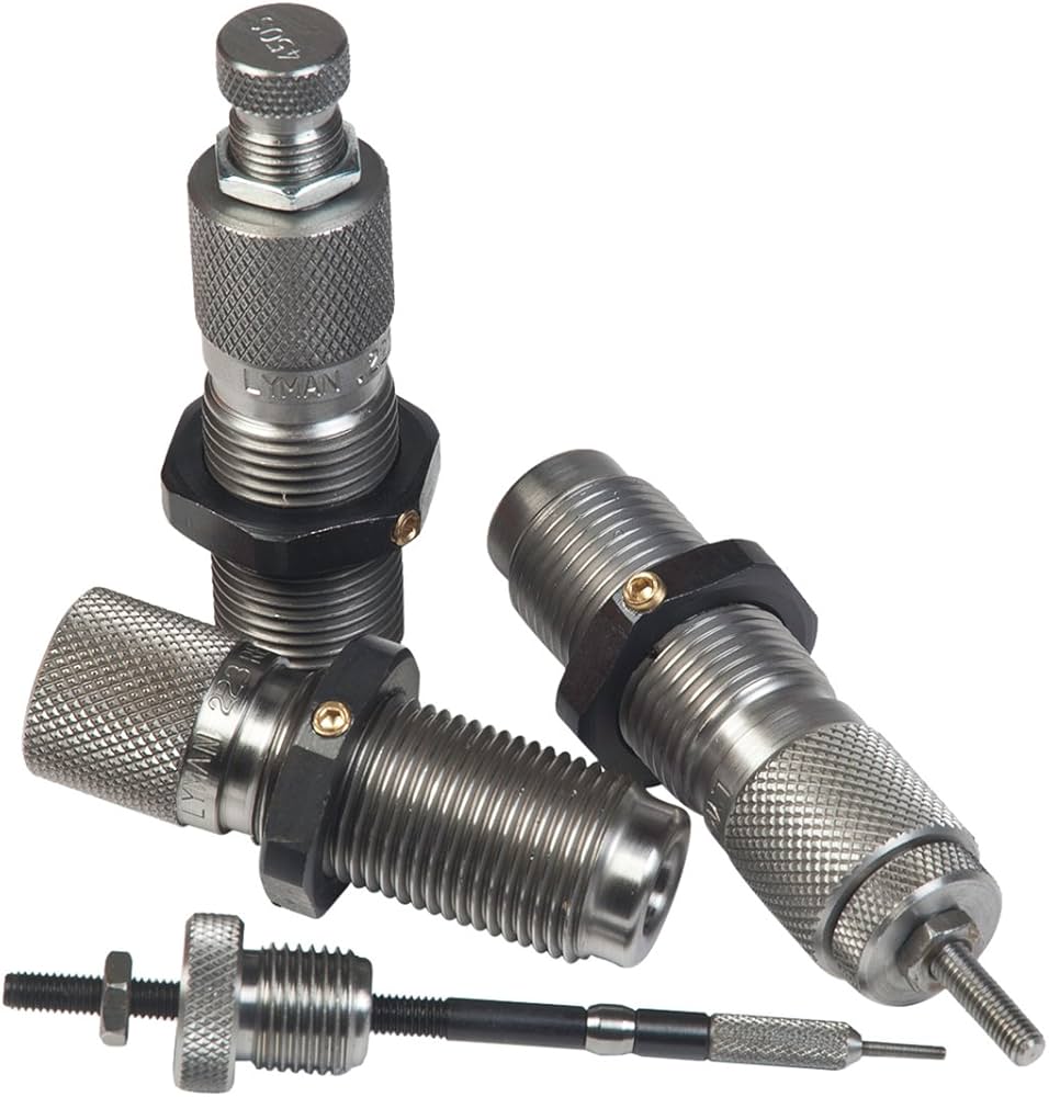 Lyman 3-piece tool set designed for reloading straight-walled rifles . Includes everything needed for precise resizing, neck enlargement, and bullet seating.