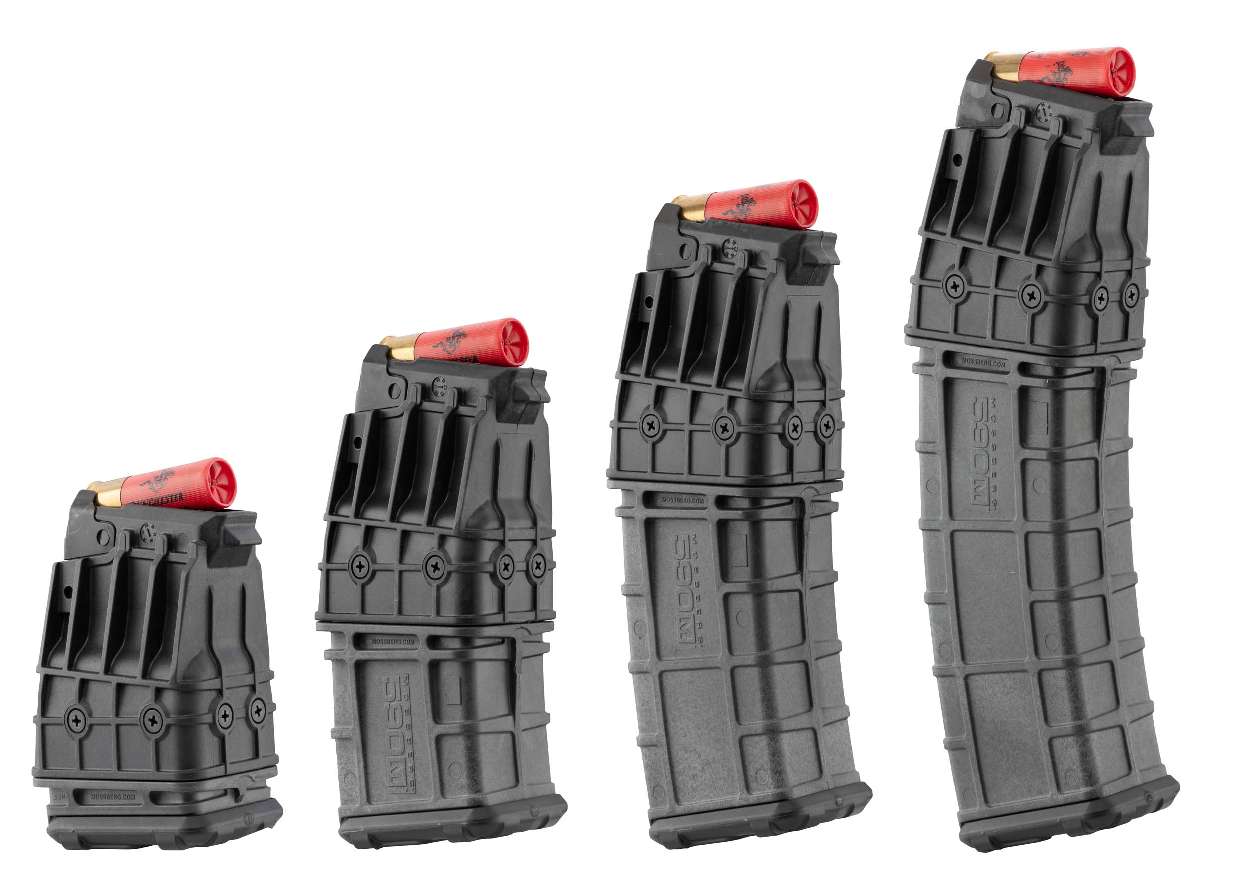 High-strength polymer magazines for Mossberg 590M shotguns, available in 4 capacities (5, 10, 15, and 20 rounds). Perfect compatibility with Mag-Fed platforms. Ideal for maximizing firepower in demanding tactical environments. Smooth and secure feeding mechanism.