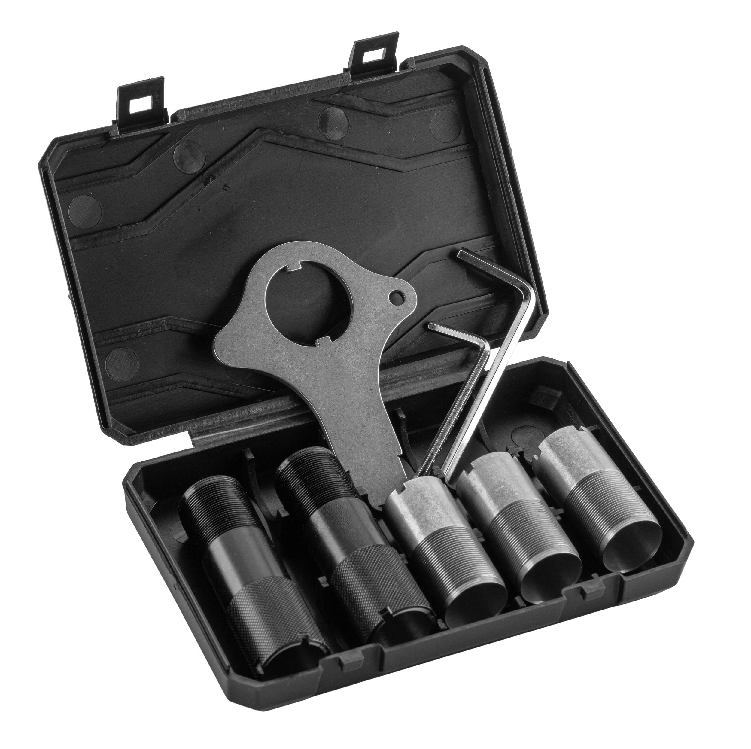 With its 76 cm barrels equipped with a 10 mm ventilated rib and a fiber optic rear sight , this rifle allows for rapid and precise target acquisition. It comes with a complete set of 7 interchangeable chokes (internal and external), allowing the shot pattern to be adapted to each shooting situation.