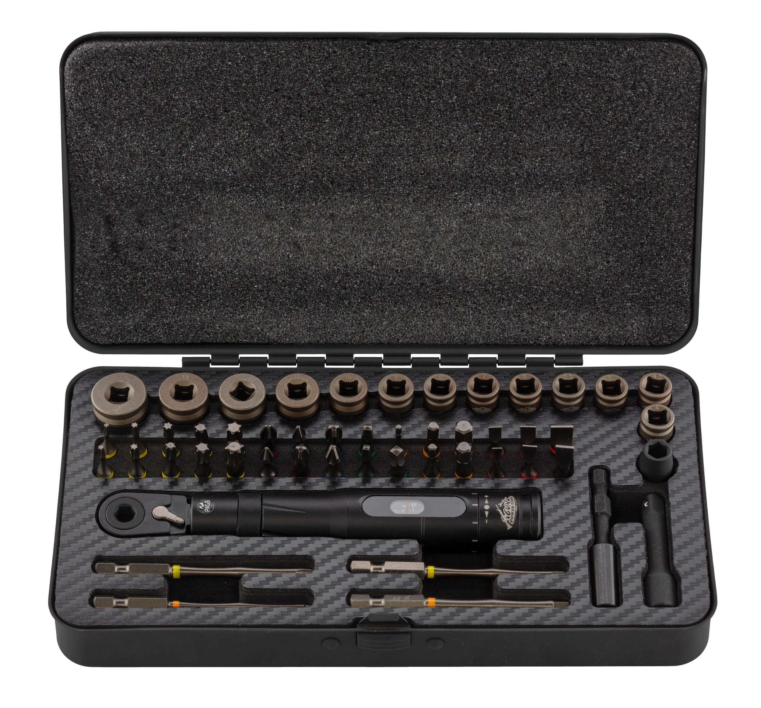 The GUN POWER TOOL Elite 51-piece Dynamometer Kit is a professional set designed for airsoft technicians, combining tightening precision , compactness, and tactical robustness. An essential control tool for every sensitive adjustment.