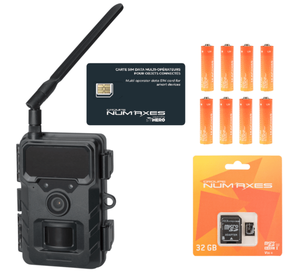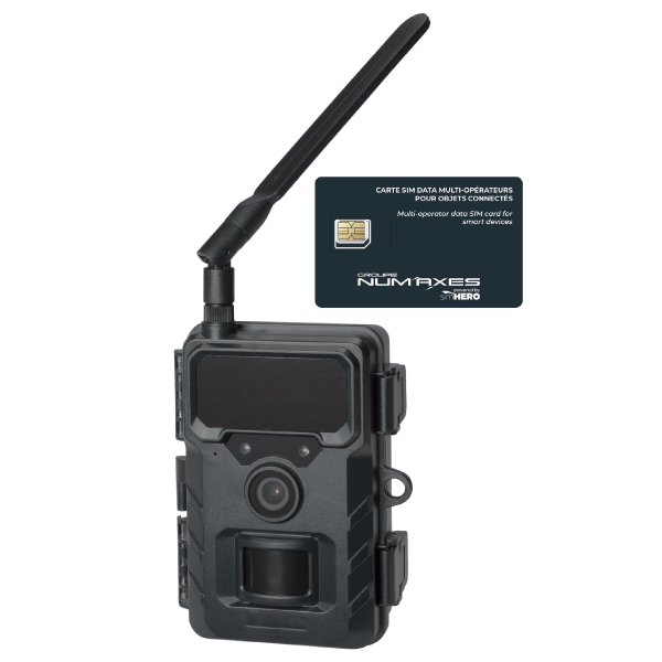 The NUM'AXES PIE1150 is a cellular camera trap designed to effectively monitor a territory remotely through the automatic sending of images to a dedicated mobile application.
