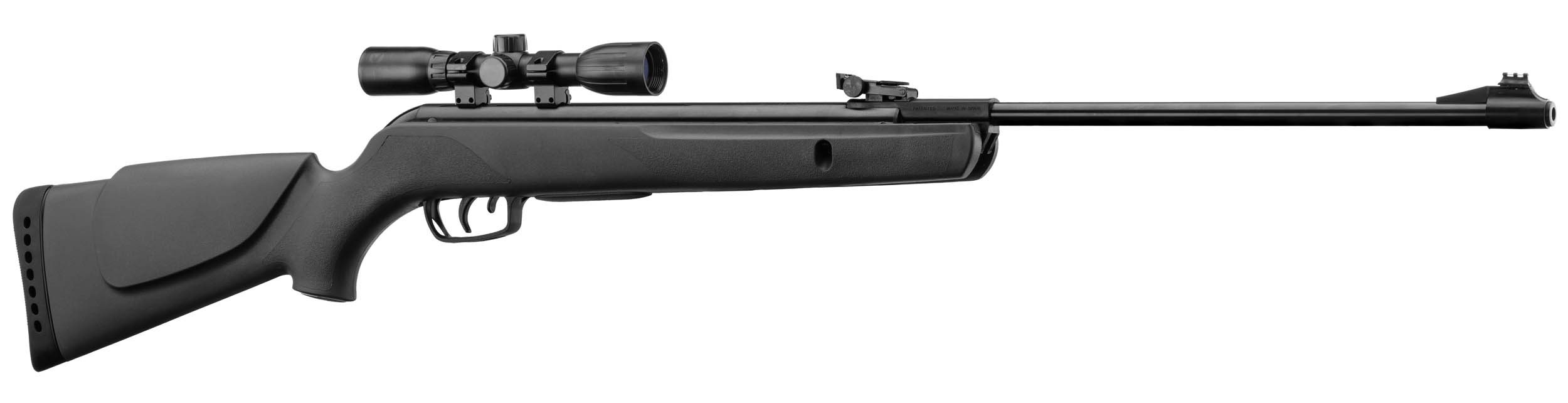 Thanks to its robust spring-piston system, this rifle delivers a muzzle velocity of 305 m/s in 4.5 mm caliber - ensuring accurate shots at medium range. The black synthetic stock provides a comfortable grip, even during extended shooting sessions.
