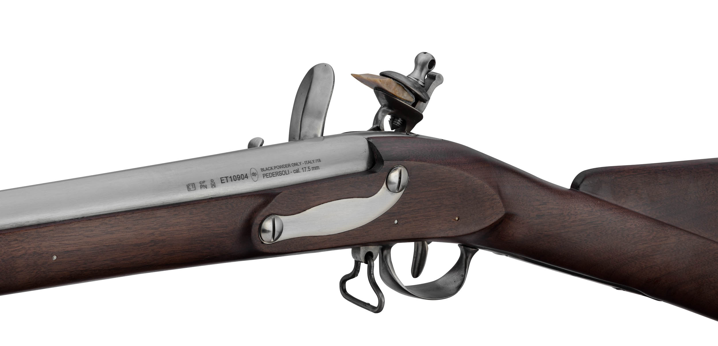 Le fusil An IX Dragons de Pedersoli est une reproduction rigoureuse du modèle réglementaire en service sous le Premier Empire. Son canon plus court et ses garnitures en laiton en font une arme de choix pour la reconstitution, le tir ou la collection.