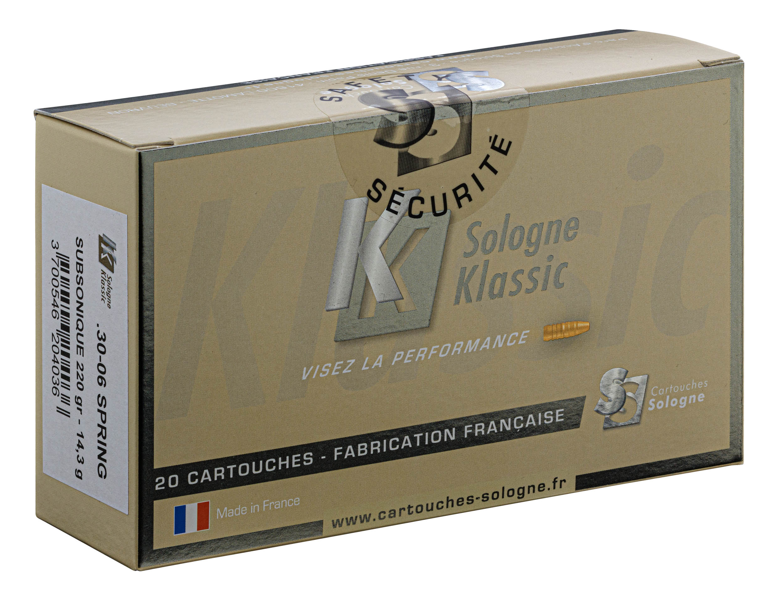 La Sologne Klassic .30-06 Springfield Subsonique, équipée d’une balle Sierra Round Nose Soft Point, assure discrétion et efficacité balistique.