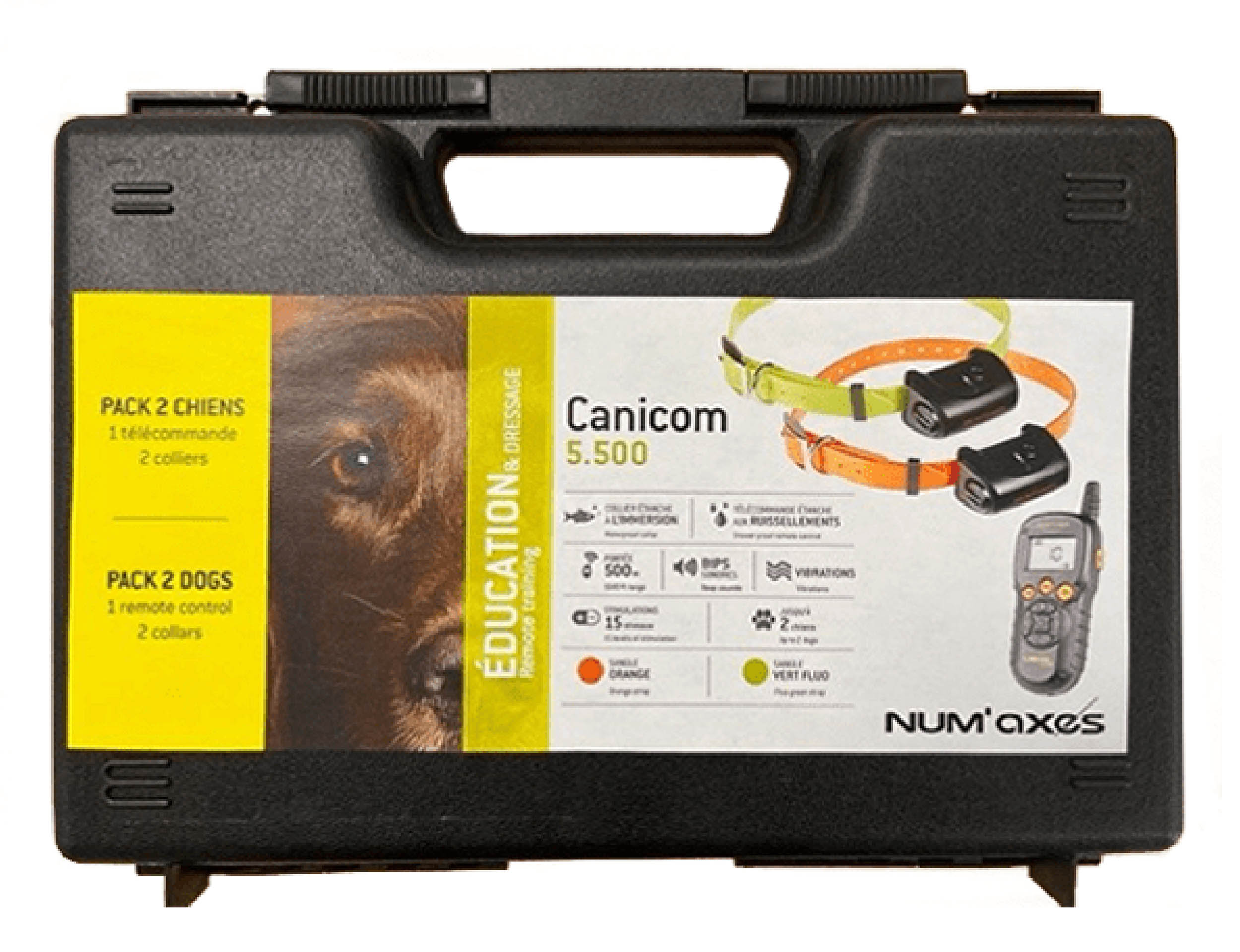| Réf. NUM360P | Désignation Kit 2 chiens (1 commance + 2 colliers) | Catégorie légale Vente libre | Poids (g) 85 | Coloris Bicolore |