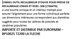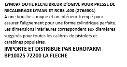 | Réf. LYM093 | Désignation .354 H&I SIZING DIE #2766534 | Catégorie légale Vente libre | Diam. ('') 0.354 |