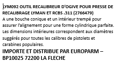 | Réf. LYM092 | Désignation .311 H&I SIZING DIE #2766479 | Catégorie légale Vente libre | Diam. ('') 0.311 |