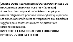 | Réf. LYM083 | Désignation .451 H&I SIZING DIE #2766515 | Catégorie légale Vente libre | Diam. ('') 0.451 |