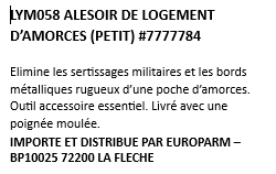 | Réf. LYM058 | Désignation Primer Pocket Reamer Small #7777784 | Catégorie légale Vente libre |
