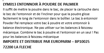 | Réf. LYM013 | Désignation POWDER PAL ELECTRONIC SCALE FUNNEL PAN #7752433 | Catégorie légale Vente libre |