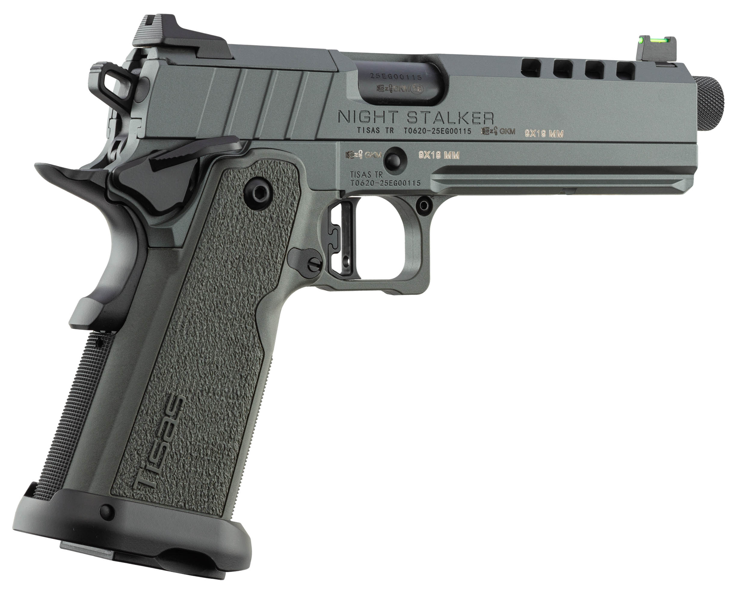 Le Tisas 2011 Night Stalker Bull Barrel Full Frame 9x19 est une version évoluée du 2011, conçue pour la performance et le tir sportif dynamique. Avec son canon fileté, sa culasse ajourée et sa finition Cerakote gris platinium, il allie modernité, robustesse et style unique.