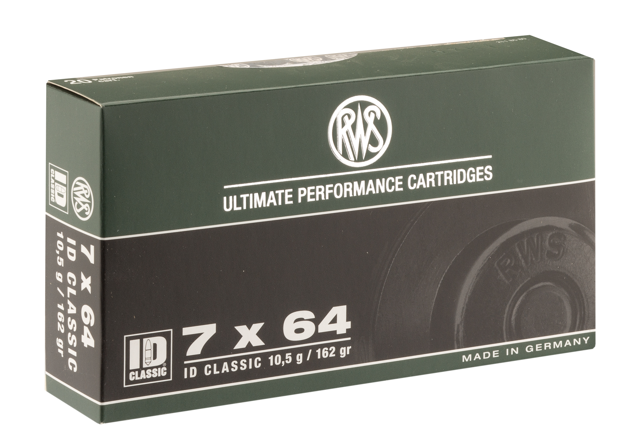 | Réf. RWS205 | Désignation ID 162 gr / 10.5 g | Catégorie légale C | Calibre 7 x 64 | Ogive / Balle ID Classic | Énergie (J) 3928 | Vitesse (m/s) 865 | Cdt 20 | Grains 162 | Grammes 10.5 |
