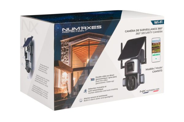 La caméra CAM1073 de Num’Axes offre un concentré de technologies dans un format simple à installer. Robuste, connectée, intelligente et autonome, elle s’impose comme une solution idéale pour les professionnels à la recherche d’un système de surveillance complet, sans fil et sans compromis.