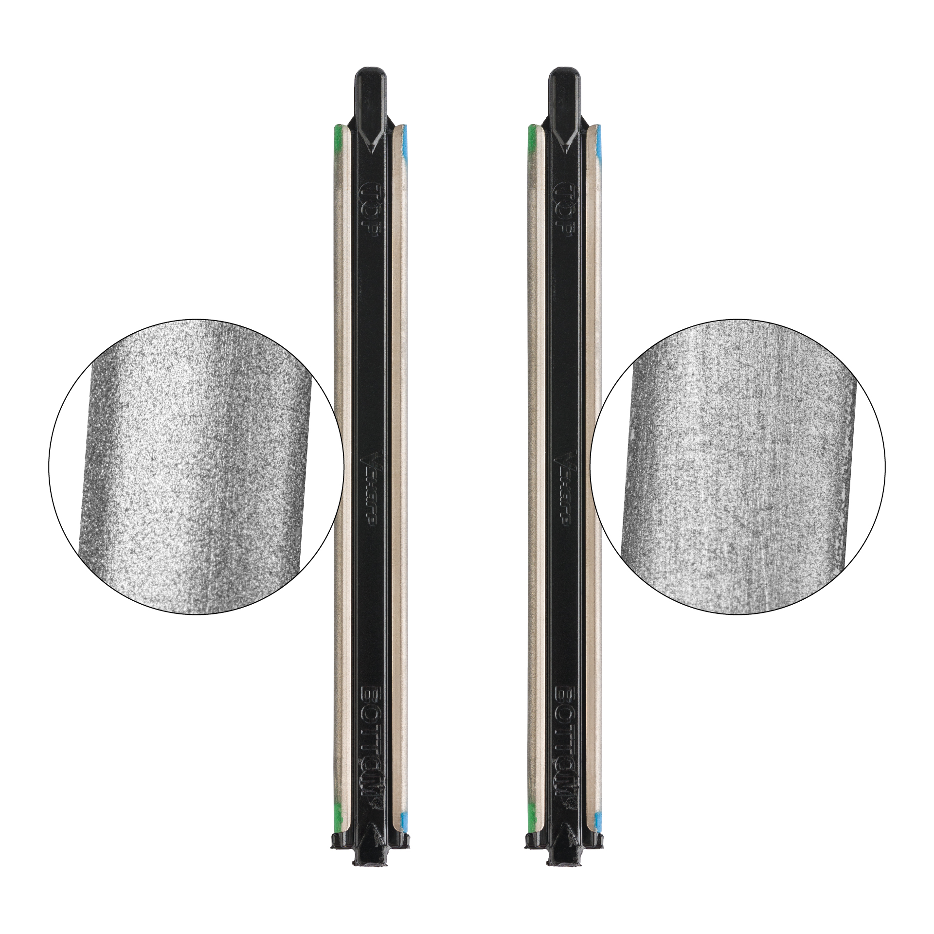 Ces tiges abrasives ont été conçues pour remplacer ou compléter les unités d’affûtage des modèles V-Sharp Classic II et A4. Contrairement aux tiges standards qui disposent d’une face diamant et d’une face acier de polissage, celles-ci intègrent deux grains distincts : 600 grains pour l’affûtage fin et 1000 grains pour la finition et le tranchant rasoir.
