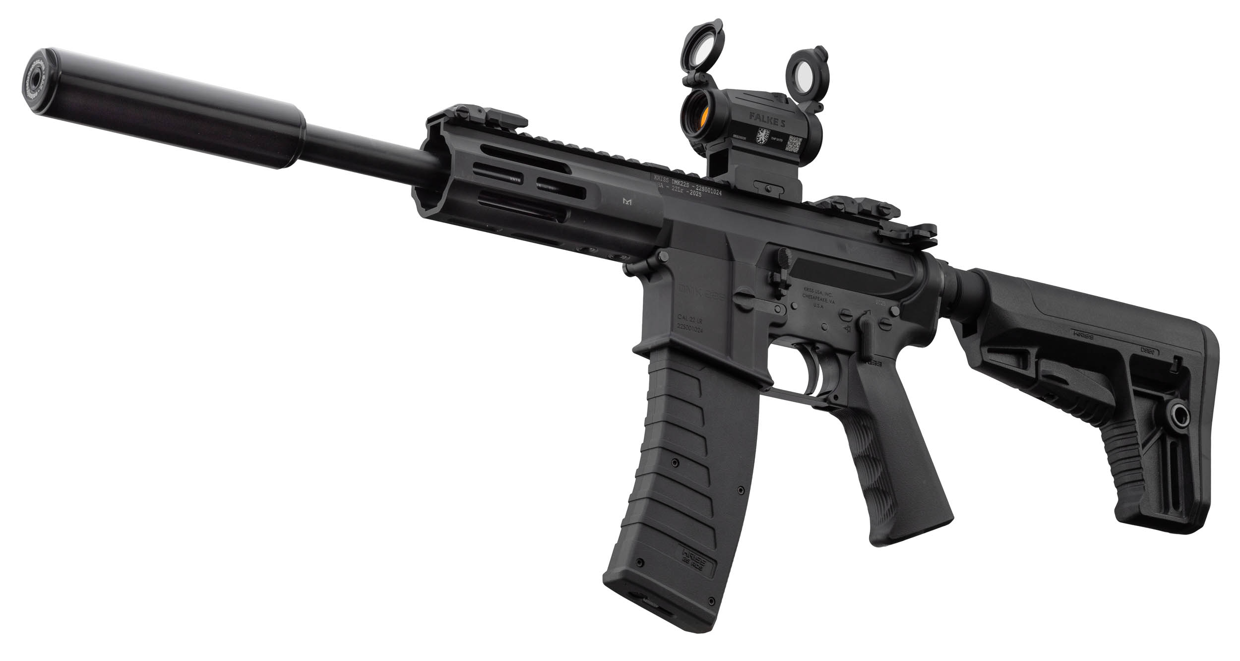 Le pack KRISS DMK22S rassemble une carabine compacte en .22 Long Rifle, un silencieux à haute atténuation et un point rouge robuste — conçu pour le plaisir du tir sur gong et quille tout en maîtrisant l'empreinte sonore grâce à l'emploi recommandé de munitions subsoniques. La mécanique éprouvée du DMK22S assure un cyclage fluide quelles que soient les munitions .22 LR utilisées.