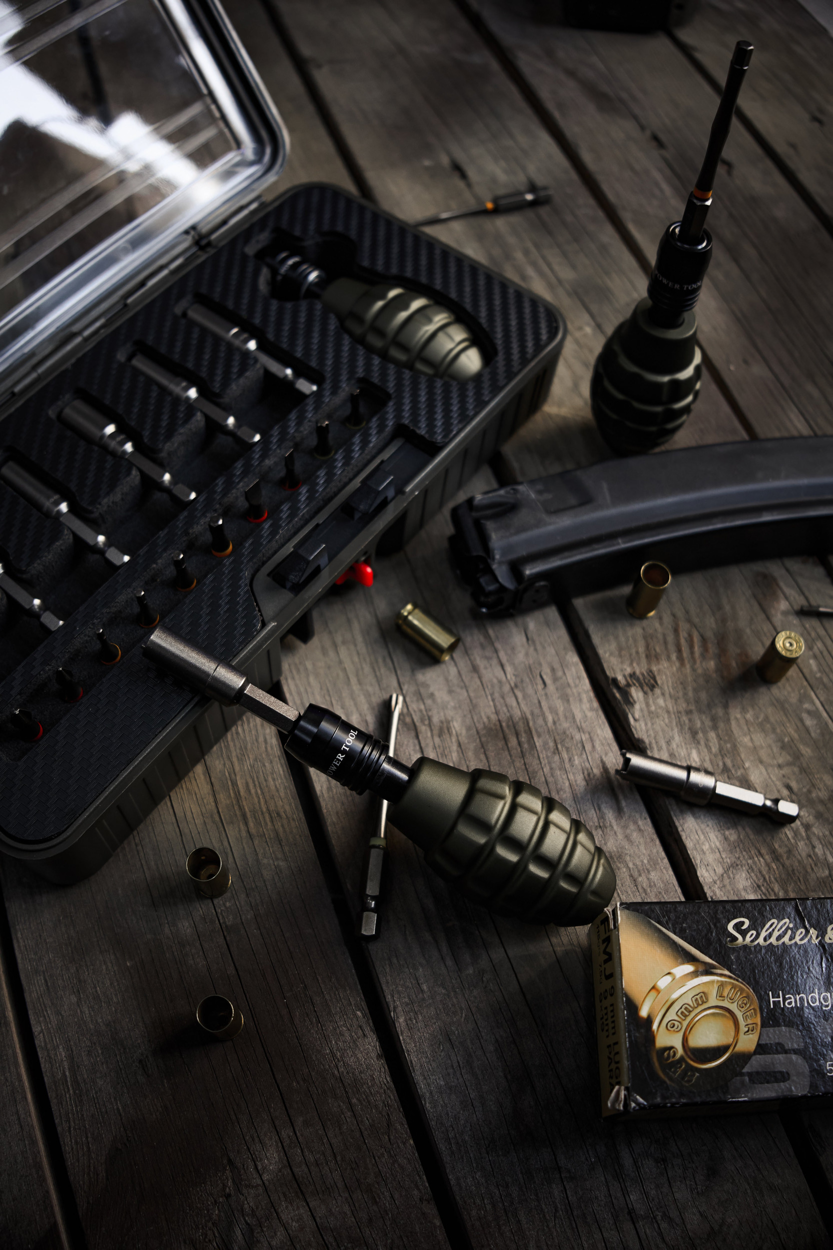 Le GUN POWER TOOL Set Outils 17 pcs Grenade est un kit d'entretien complet pour répliques airsoft GBB, combinant une poignée ergonomique style grenade MKII et une compatibilité étendue avec les valves des grandes marques du marché.
