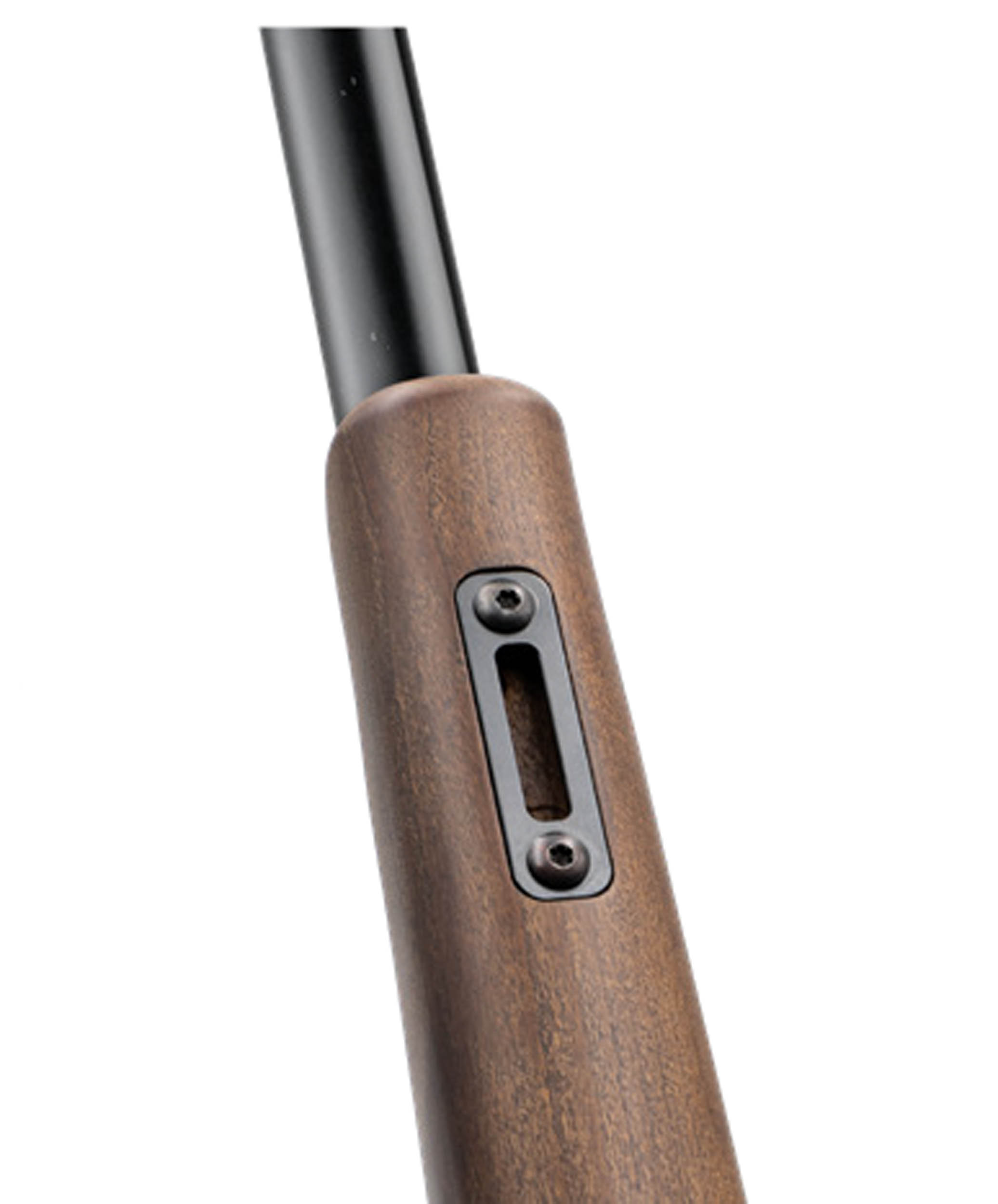 Le rail Picatinny intégré simplifie l'installation d'une lunette de tir ou d'un point rouge. La crosse en hêtre huilé avec poignée pistolet offre une prise en main naturelle et stable. La finition bronzée mate protège l'arme tout en conservant une esthétique sobre.