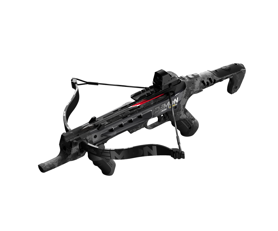 La Demun™ AccuStrike Pro adopte une architecture recurve simple et efficace, avec des branches paraboliques renforcées R80. Son format pistolet la rend particulièrement maniable et rapide à mettre en œuvre. Avec une vitesse pouvant atteindre 210 FPS, elle délivre des performances adaptées au tir de précision à courte et moyenne distance.