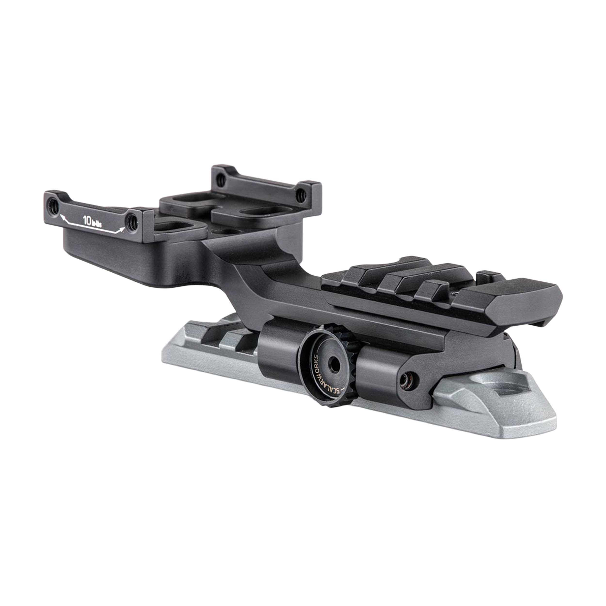 Le Scalarworks LEAP/12 est un montage quick-detach dédié aux optiques Eotech EXPS, offrant une solution intégrée légère et robuste avec rail additionnel pour magnifier.