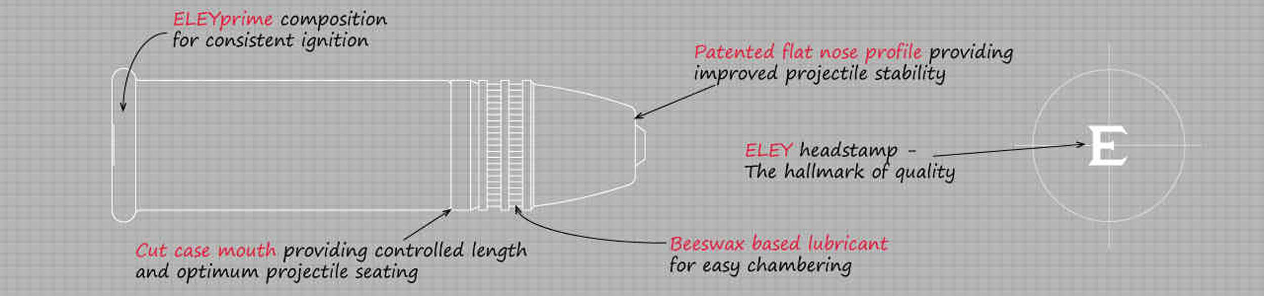 La cartouche ELEY Team propose la technologie brevetée de balle à nez plat et de l'étui réduit pour assurer des performances constantes à chaque tir.