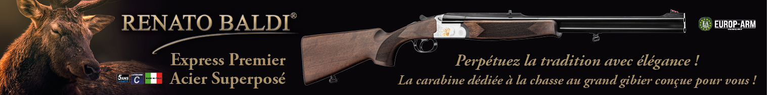 Renato Baldi est un célèbre fabricant italien basé dans la 1ère région de production de fusils au monde au Val Trompia. Il fabrique des fusils superposés ou juxtaposés ainsi que des carabines de chasse à verrou ou express destinées à la chasse au grand gibier.