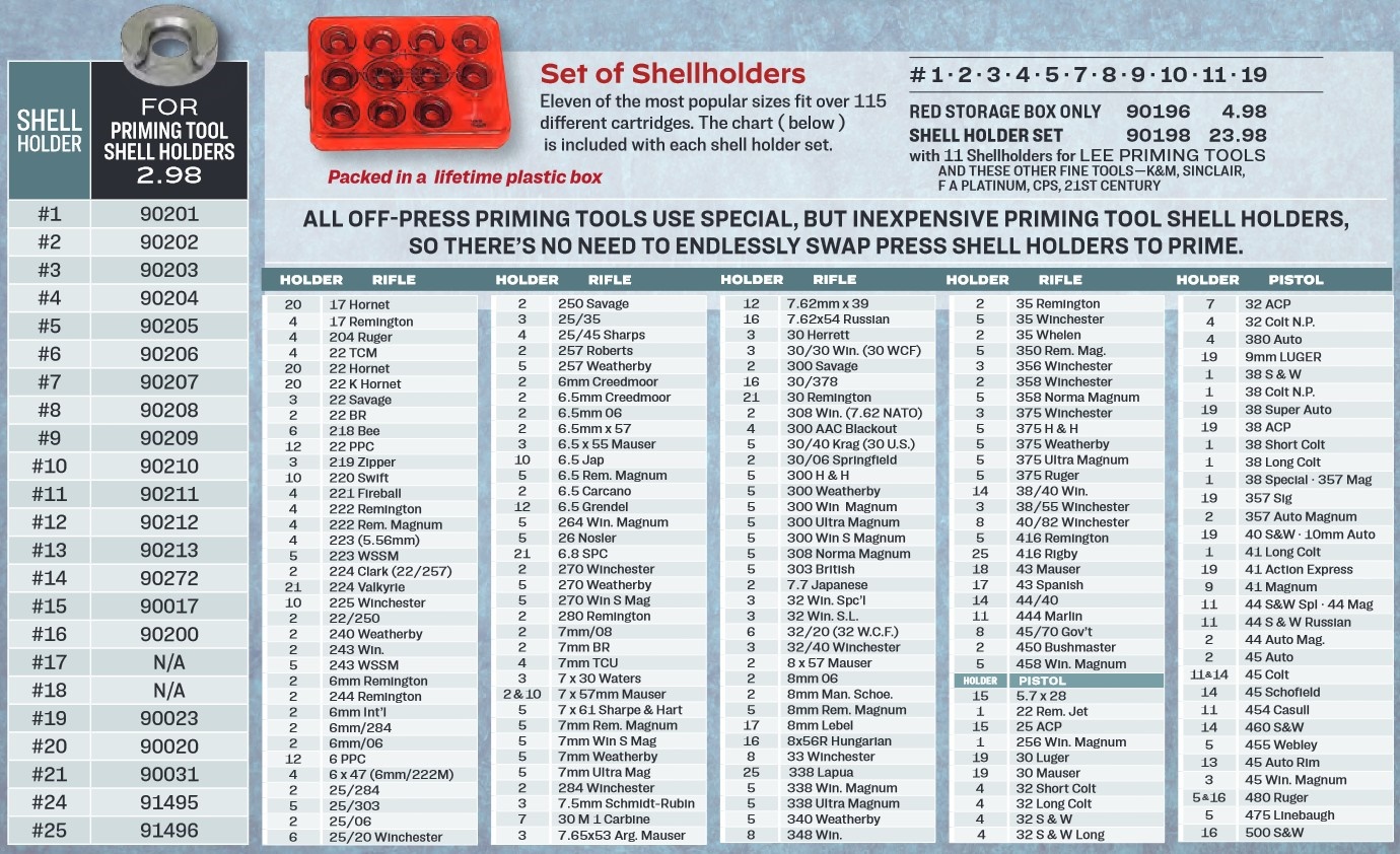 | Réf. LE578 | Désignation Kit de 11 Shell Holders (support de douille) R-Type pour presse | Catégorie légale Vente libre |